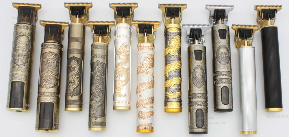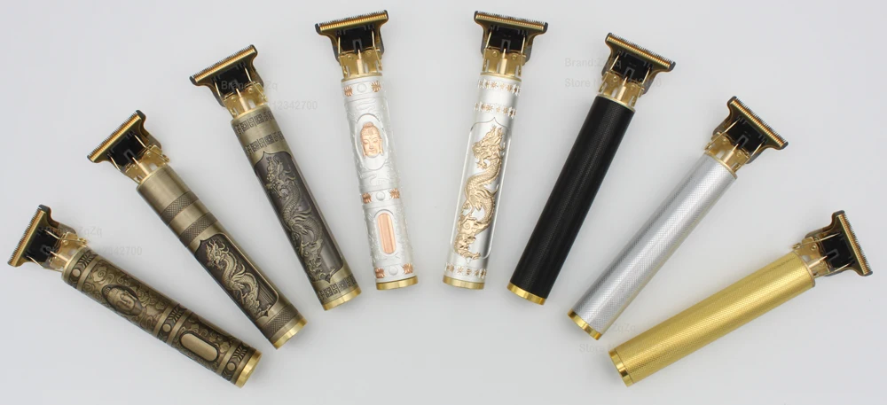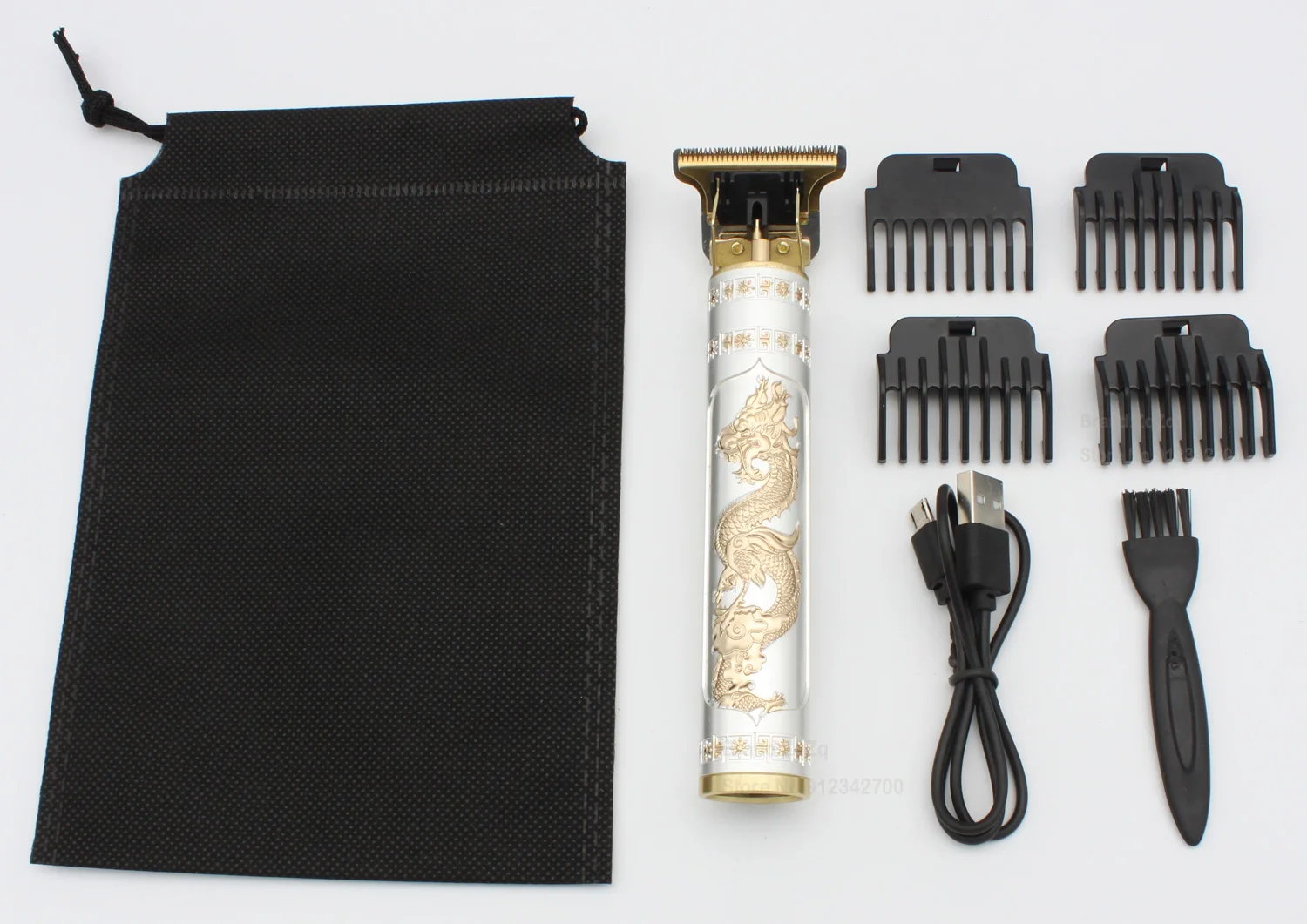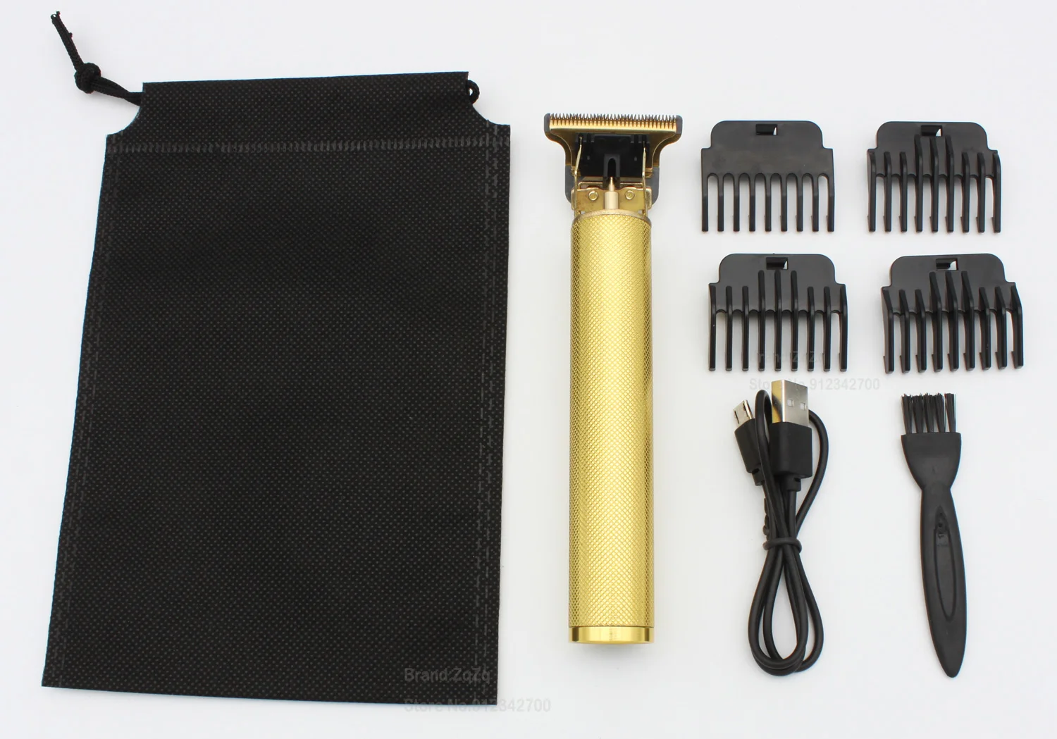 Titânio real 0mm gapped t lâmina de ângulo obtuso em forma de r, é afiada e segura! Cabelo-pele-amigável! Nenhum cabelo preso e nenhum couro cabeludo machucar! Faz muito fácil criar seus próprios estilos e padrões de cabelo personalizados. Equipado com 3 tipos de pentes de limite (1.5mm, 2mm, 3mm,4mm) para caber suas múltiplas necessidades de corte de cabelo. Muito profissional barbeiro corte de cabelo kit t lâmina aparador para homem!